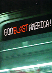 ![]() Das Mini-Intro führt kurz auf eine falsche Fährte: Die Festival-Bilder, die schnell gegen eine einfahrende Metro geschnitten sind, erwecken den Eindruck eines folgenden Konzertfilms, dabei handelt es sich ausschließlich um teilweise oder sogar in Gänze abgefilmte Auftritte. ANENZEPHALIA machen den Anfang und geben eine der möglichen Richtungen vor, wie ELENIDIS mit den Bildern umgeht: Weil halt bei Industrial-Auftritten auf der Bühne eher wenig passiert, außer Lichtblitzen die Musiker sogar oft ganz im Dunkeln bleiben, filmt er großflächig die Videosequenzen ab, die ANENZEPHALIA (und andere) als Hintergrund verwenden. Gleichzeitig setzt er den Winkel so, dass bei kurzem Sichtbarwerden des Bühnengeschehens sich die Musiker im Vordergrund und die Videosequenzen im Hintergrund überlagern. Genau so nahm wohl auch der Zuschauer vor Ort das Geschehen war, man fühlt sich als DVD-Kucker deshalb sehr nah dran. Sofort fallen übrigens ein hervorragender Sound in Studioqualität und ein kristallklares Bild auf. "God Blast America!" ist also meilenweit entfernt von den ansonsten oft recht dürftigen Konzertmitschnitten, den handgemachten Fanvideos dieser Szene. Bei JANITOR kommt dann die ruhigere Bildvariante zum Tragen. Man kann sehr entspannt den Musikern beim Arbeiten - oder beim Wippen mit den besockten Füßen - zukucken, was in diesem Fall zur etwas ruhigeren, beinahe ambienthaften Musik passt. Ein drittes Modell praktizieren die Kameraleute bei DER BLUTHARSCH, deren martialischen Auftritt mit Uniform, Trommeln und Fackeln sie von der Seite, gegen das Licht filmen. So entsteht eine Scherenschnitt-Optik. Hier muss erneut festgehalten werden, dass die Akustik wirklich überdurchschnittlich ist, was gerade bei den zahlreichen BLUTHARSCH-Protagnonisten auffällt. Die Liveatmosphäre ist dennoch zu spüren, wird vor allem von der ständig in Bewegung bleibenden Kamera transportiert. Sehr gelungen ist dann wieder der Auftritt von BOCKSHOLM in Szene gesetzt, mit der bei ANENZEPHALIA erwähnten Mischung aus Bühnenbild und Videosequenzen (Stahlarbeiter), die Musik dazu ein passendes, maschinelles Stampfen. Soweit ein kurzer Überblick. Außer der Reihe gibt es immer mal wieder ein wenig Action, wenn einer der Sänger ins Publikum geht, welches auf einer Ebene mit den Musikern steht, und die vordere Reihe anschreit, was zu erstaunlich wenig Reaktionen führt. Außerdem stellen GENOCIDE ORGAN wieder einmal unter Beweis, dass sie in einer eigenen Liga spielen, vor allem ihr zweites Stück "John Birch Society" ist ein rhythmisches Inferno und wirkt wie entfesselt. Ein tolles Zeitdokument! Optisch holt ELENIDIS wohl das beste heraus, was aus typischen Industrial-Auftritten zu machen ist. Akustisch ist "God Blast America!" ohnehin fantastisch, zum einen was die Aufnahmequalität, zum anderen was die Mischung der Bands angeht. Rund 40 Songs, teils komplette Auftritte der Beteiligten, 230 Minuten Musik am Stück, und entgegen der Warnung des Labels auch gut am Stück durchsehbar. Industrial-Pflichtkauf. Auf den Seiten von SLOGUN BLASTAMERICA.HTM">finden sich übrigens viele Festival-Fotos, und zum Einstimmen könnt Ihr hier den Trailer zur DVD sehen: